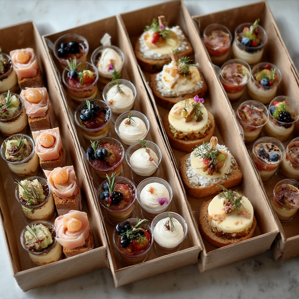 特別なメイン料理とサンドウィッチ、高級食材を使用したフィンガーフード中心のフレンチ前菜12